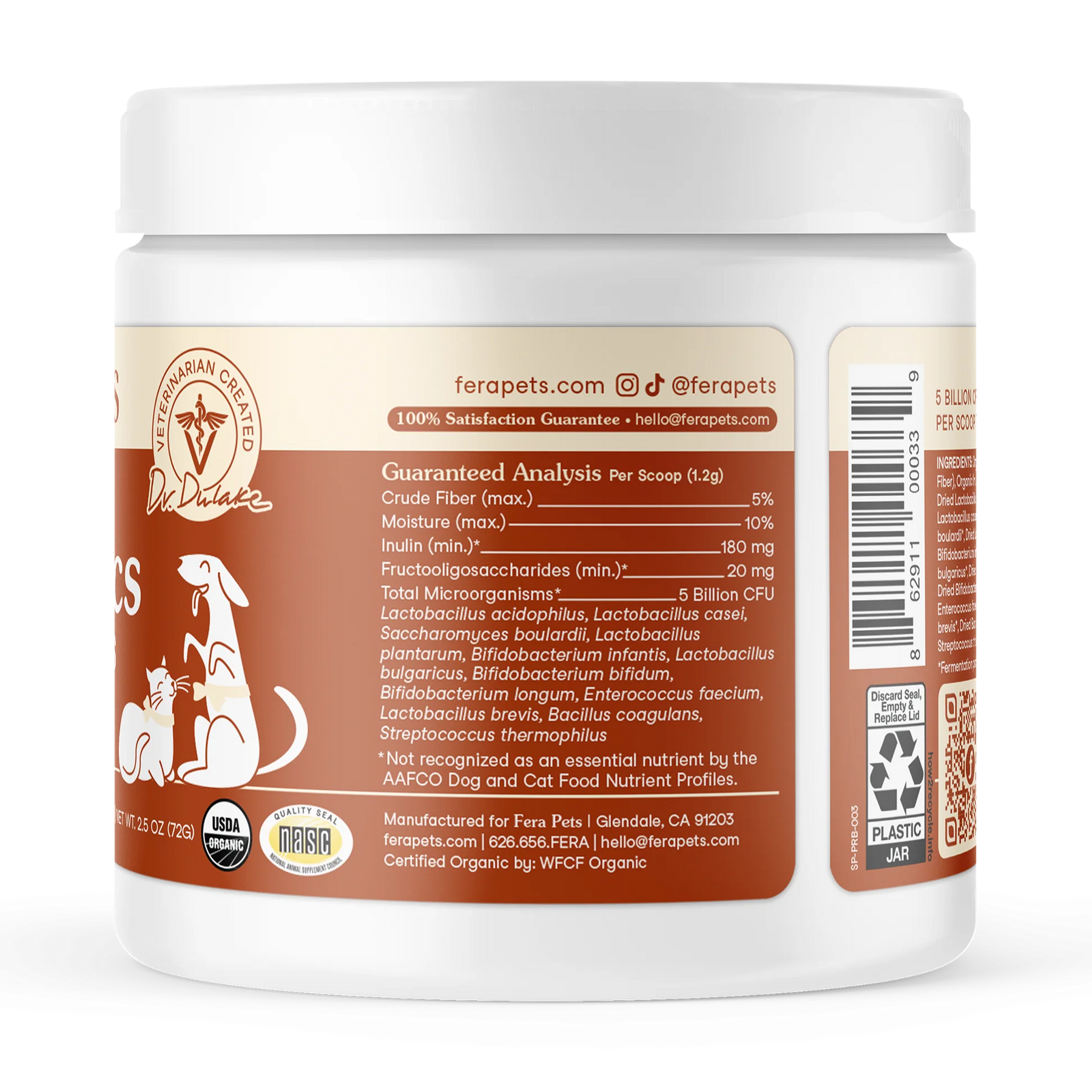 Tummy aches, loose stool, gas, low energy—it always hurts to see our pets suffer from chronic or periodic intestinal issues. It’s why we created Fera’s Probiotics + Prebiotics to keep your pet digestive system humming along perfectly.