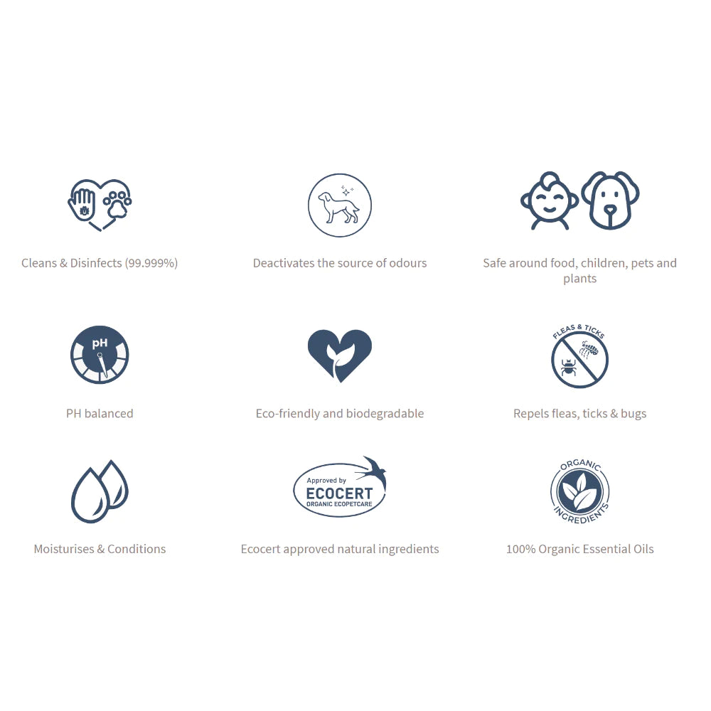 Made from high-quality Ecocert-approved natural ingredients and organic Aloe Vera to gently cleanse, moisturise and nourish paws. 100% organic essential oils leave a naturally refreshing fragrance while repelling fleas, ticks and bugs. Formulated to be pH balanced and safe for dogs and cats.