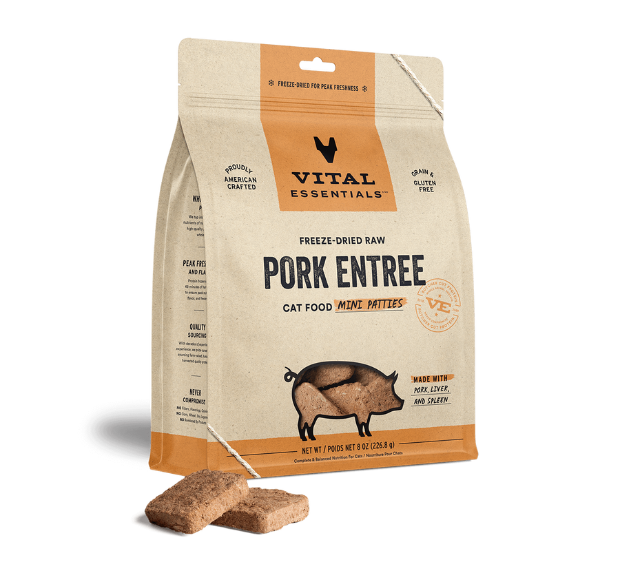 Vital Essentials® Freeze-Dried Raw Pork Entree Cat Food Mini Patties, 8 oz